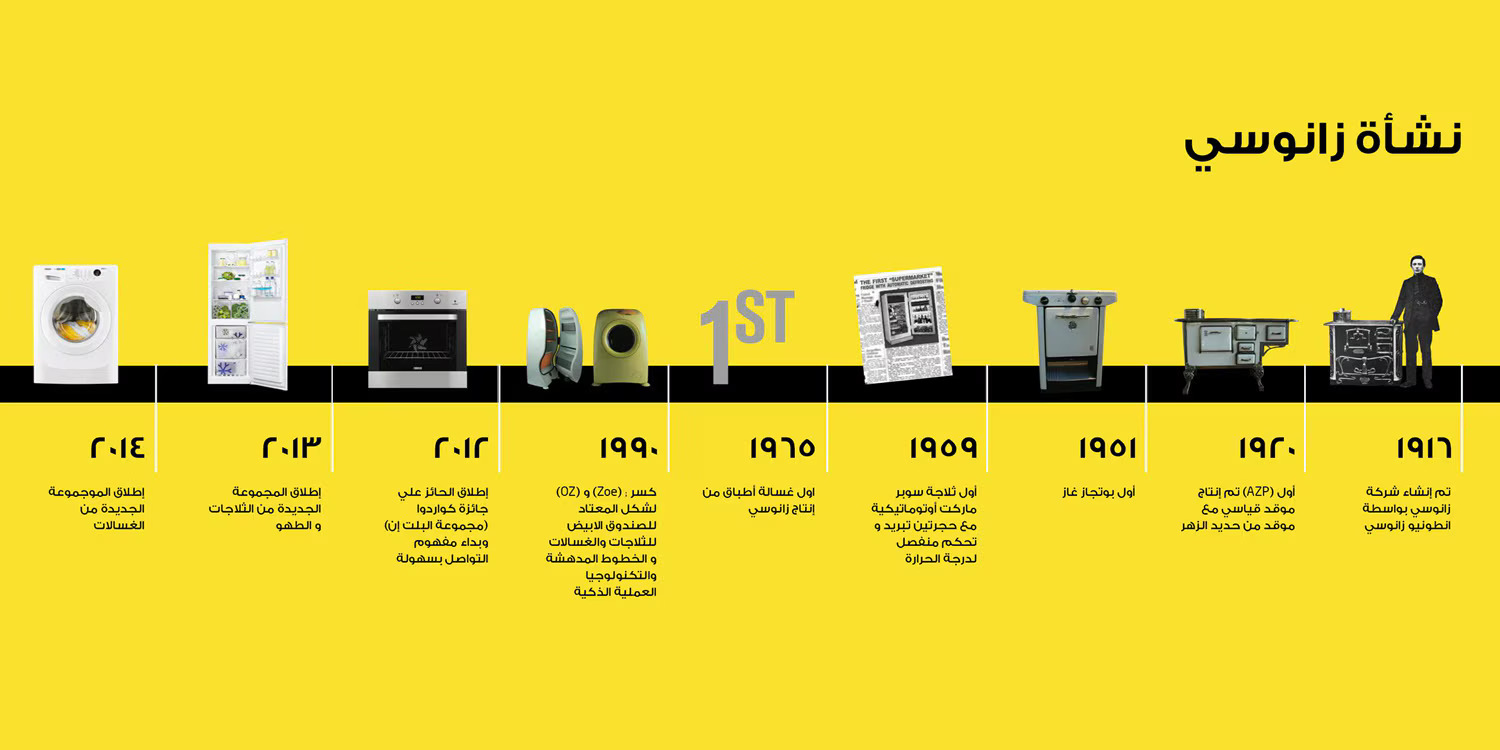 في عام 1916، بدأ الشاب المغامر أنطونيو زانوسي بصنع المواقد في شمال شرق إيطاليا، وسرعان ما قام بتطوير مجموعة من المنتجات المبتكرة. ومنذ ذلك الحين لعبت زانوسي دورًا رائدًا في مجال الأجهزة المنزلية، مع ابتكارات مثل أول بوتاجاز غاز وأول ثلاجة إذابة ذاتية. إن التصميم الإيطالي الذكي هو حجر الزاوية في نجاحنا اليوم، تمامًا كما كان كذلك قبل 100 عام.